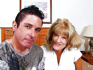 Zeit für ein Sonnenbad – Granny lässt sich von einem Jungchen einölen